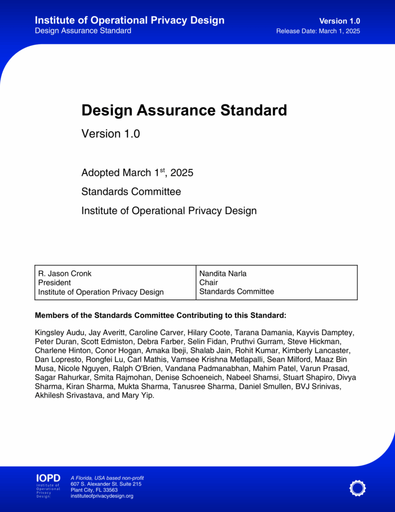 Introducing the Design Assurance Standard v1.0! While the Design Process Standard (Process Standard) details the design process components needed to incorporate privacy considerations and reduce privacy risks, this Design Assurance Standard (the “Assurance Standard”) confirms an organization’s